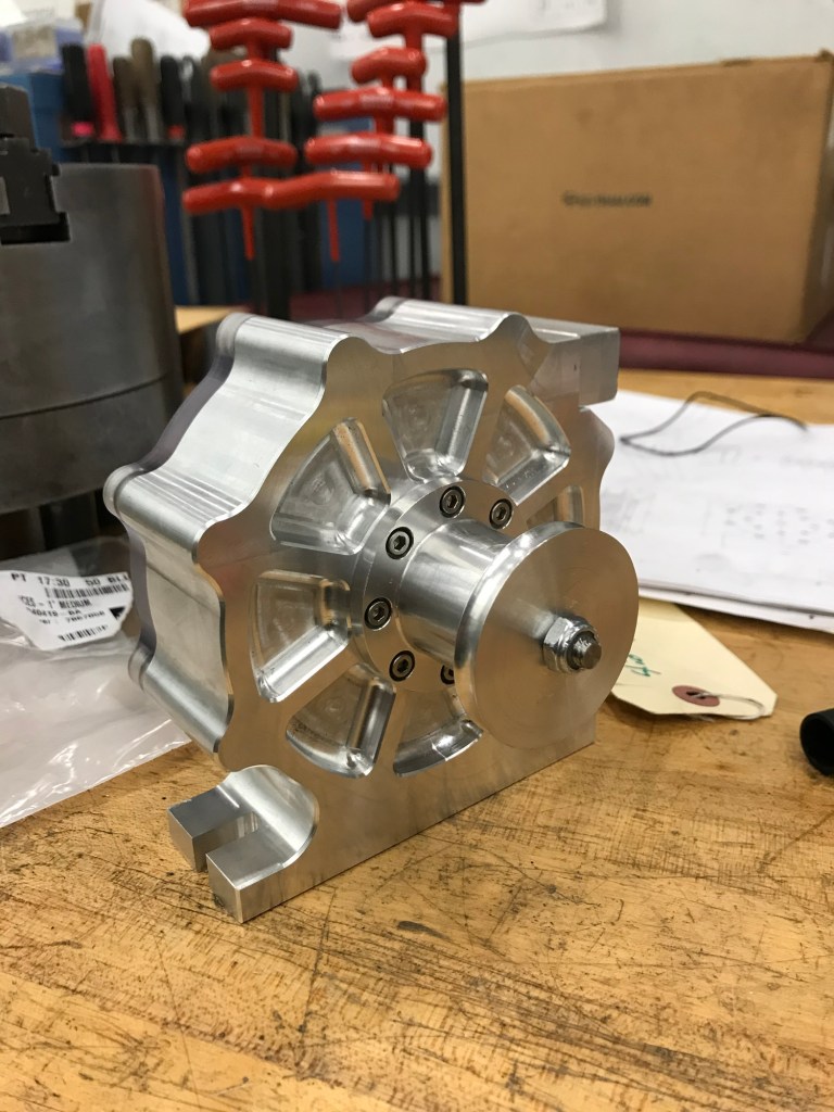 50+ hrs of machining, 2.5 CNC mill, lathe, stainless steel, aluminum, and acrylic, machined to <0.001” precision, reaching rotational speed of 20,000 rpm.